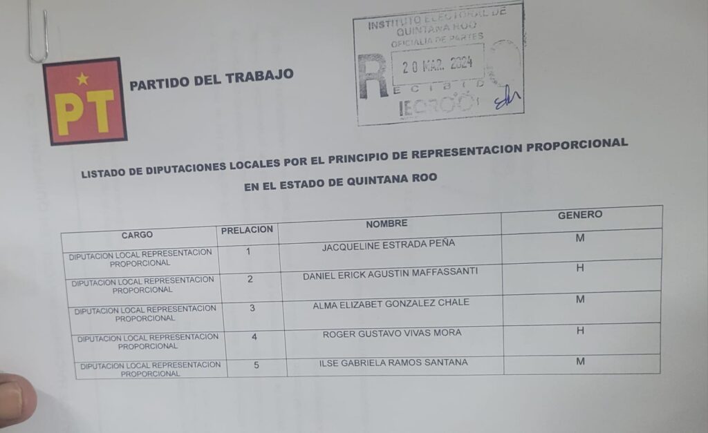 Cancún (Marcrix Noticias).- Cinco dirigentes de partidos políticos de Quintana ROo, aseguraron una curul en la próxima legislatura local con su inscripción como candidatos a diputados locales plurinominales por la primera fórmula: