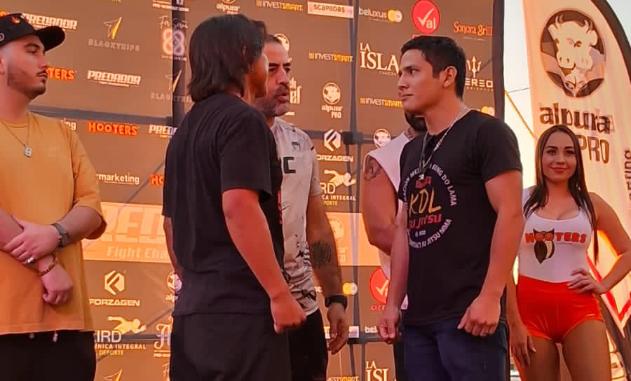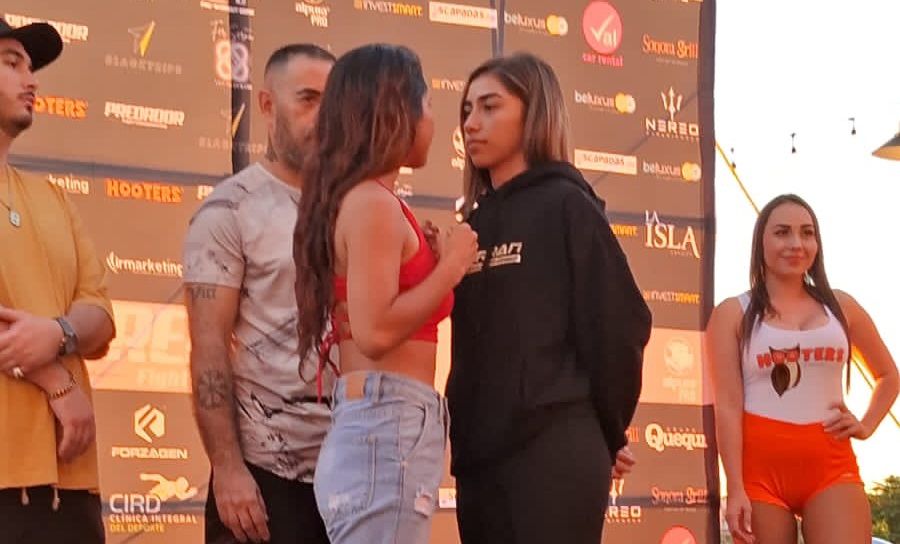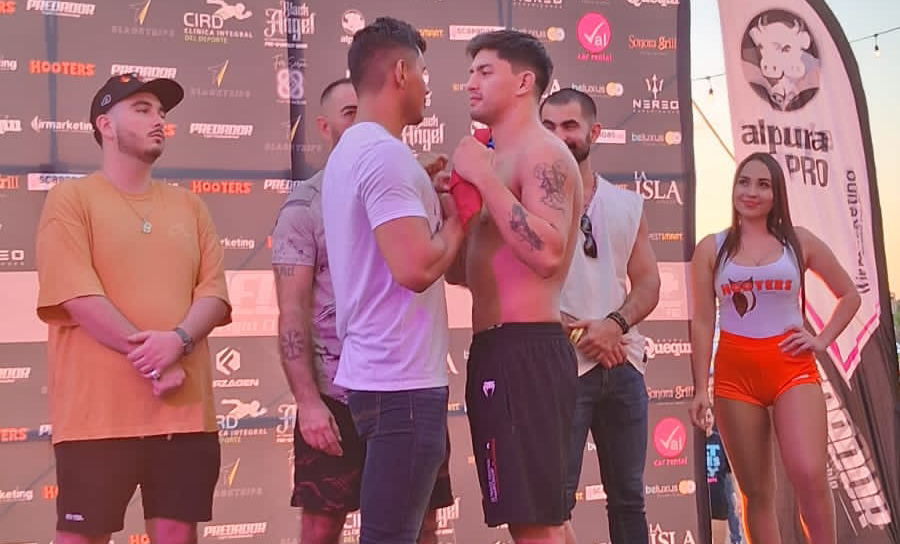 La tarde de hoy viernes, los peladores de artes marciales mixtas realizaron el pesaje oficial en el restaurante Hooters de Plaza la Isla en la Zona Hotelera de Cancún, donde por momentos se caldearon los ánimos entre algunos luchadores.