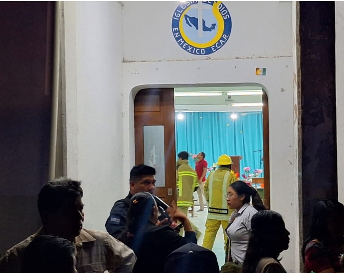Elementos de la Cruz Roja, Bomberos, Seguridad Pública y Protección Civil acudieron al llamado de auxilio, acordonaron la zona y realizaron una revisión inicial para descartar riesgos adicionales entre los asistentes al culto.