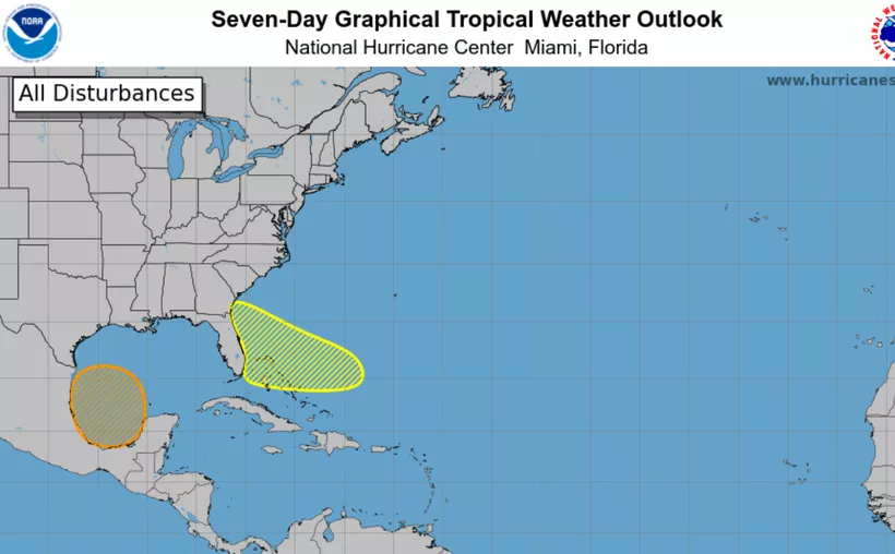 El sistema del suroeste del Golfo de México podría convertirse en una depresión tropical a mitad de semana con un 60% de probabilidad. Mientras tanto, el suroeste del Atlántico presenta pocas posibilidades de formación ciclónica a finales de la próxima semana.