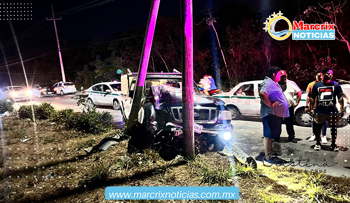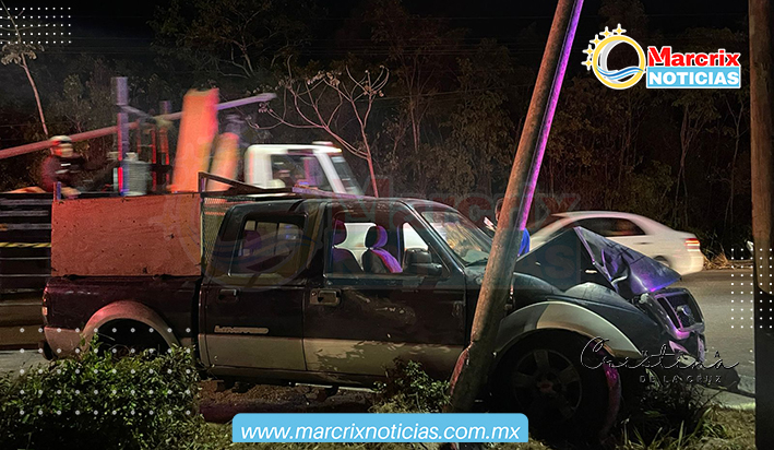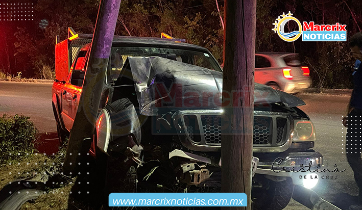Cancún (Marcrix Noticias).- La noche de hoy lunes, se registró un fuerte choque donde una camioneta se estampó contra un poste de alumbrado público.