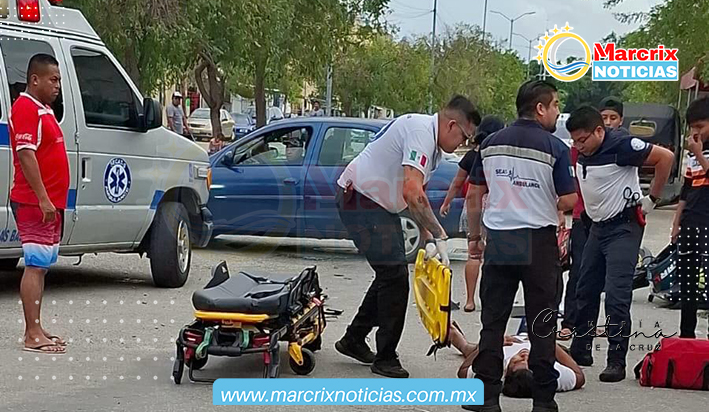 Cancún (Marcrix Noticias).- Un motociclista terminó lesionado luego de estrellarse contra un auto, cuyo conductor le hizo un corte de circulación.