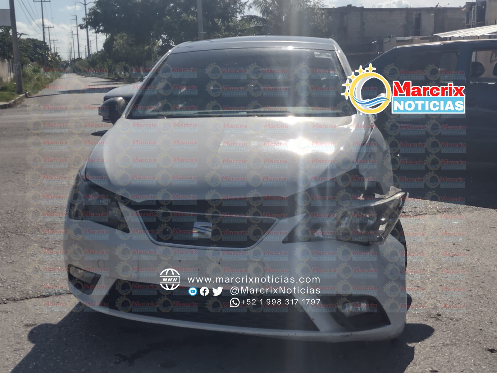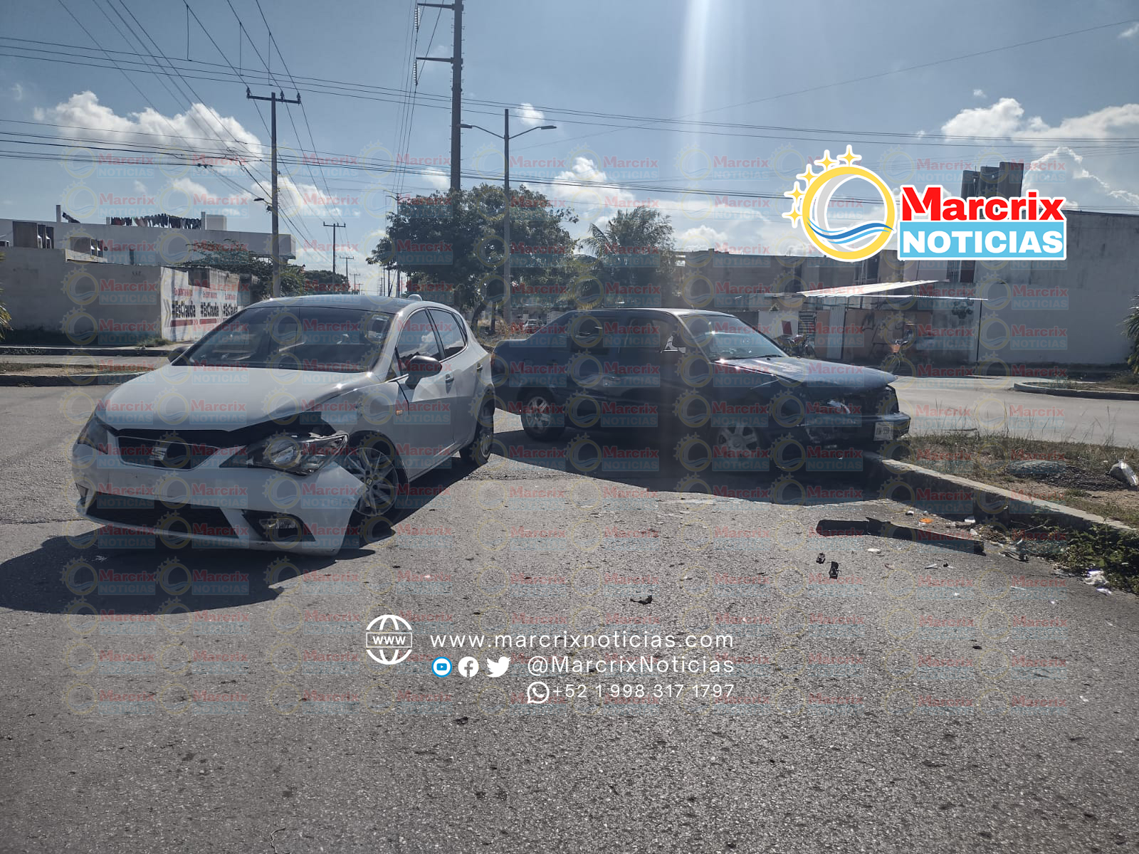 Cancún (Marcrix Noticias).- Un choque entre un Seat Ibiza blanco y un vehículo Jetta azul se registró la tarde de hoy en las calles Jacinto Canek y Cecilio Chi de la supermanzana 223 de Cancún.