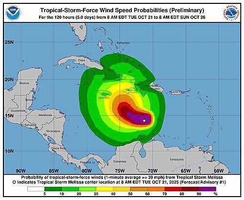 Cancún(Marcrix Noticias).- La gobernadora de Quintana Roo, Mara Lezama, informó sobre la formación de la tormenta tropical Melissa en el Caribe central. Su centro se localiza a 480 kilómetros al sur de Puerto Príncipe, Haití, y a 1,765 kilómetros al Este-Sureste de las costas del estado.