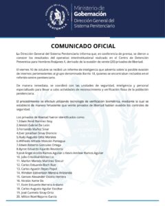 Las autoridades han advertido que reforzarán la vigilancia en los centros penitenciarios del país y que continuarán con los esfuerzos para recapturar a los prófugos, mientras se revisan los protocolos de seguridad y supervisión interna del sistema penitenciario.