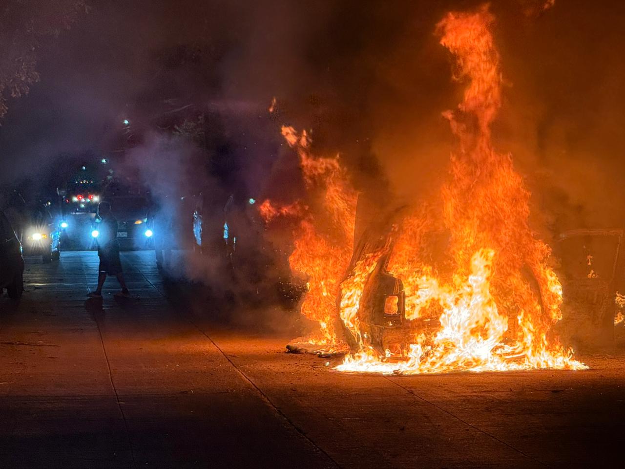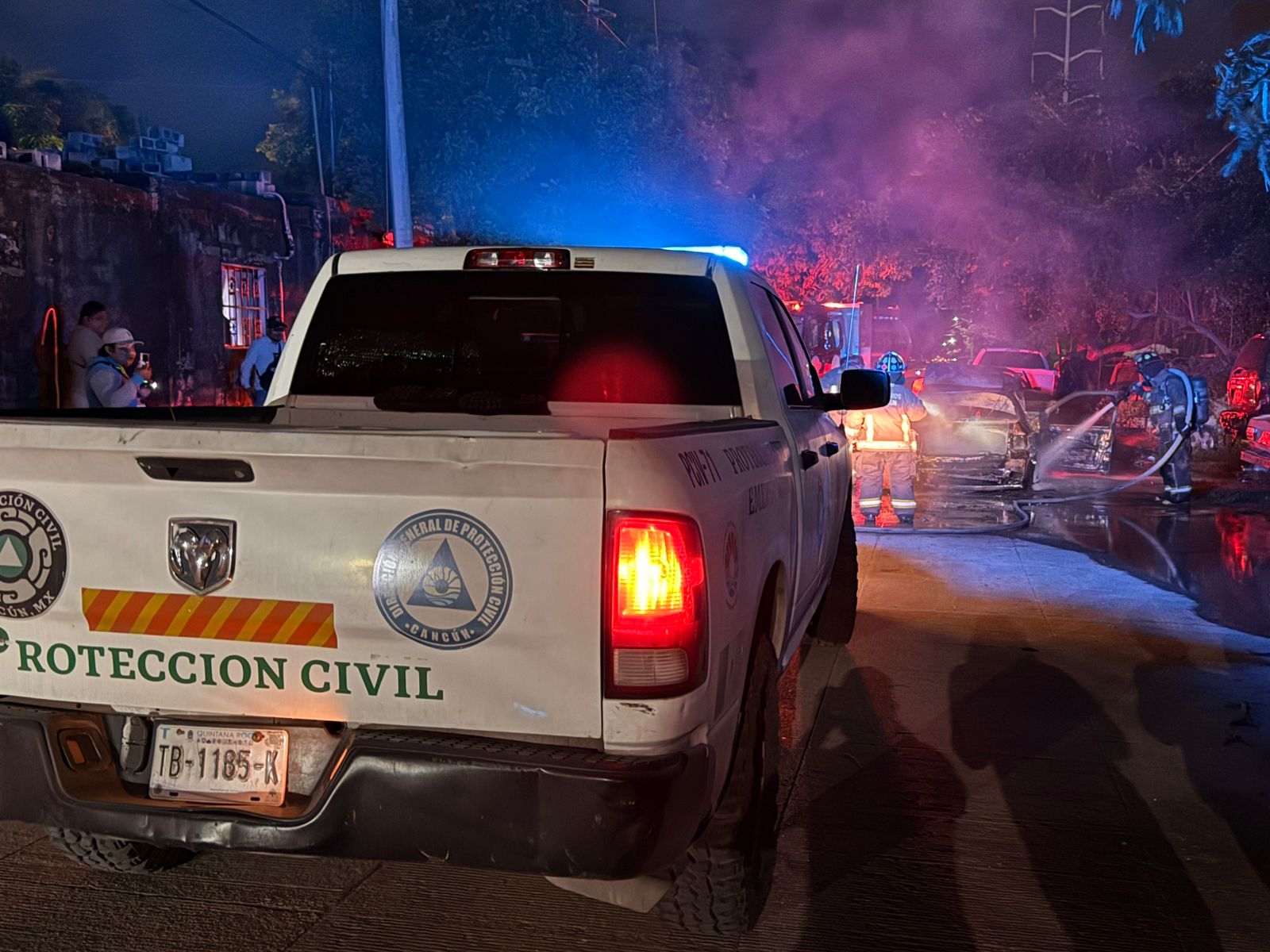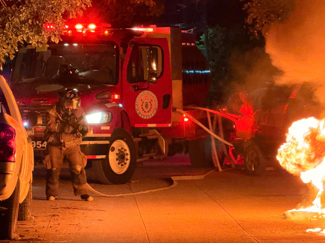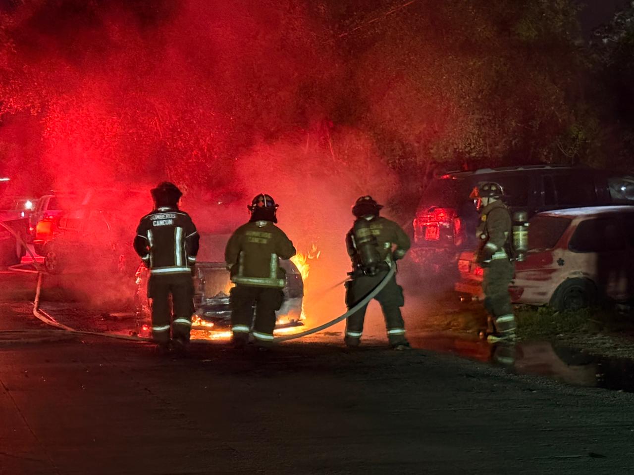 Una vez que salió del automóvil, este empezó a incendiarse y al llegar los Bomberos de Cancún solamente pusieron controlar y sofocar el incendio.