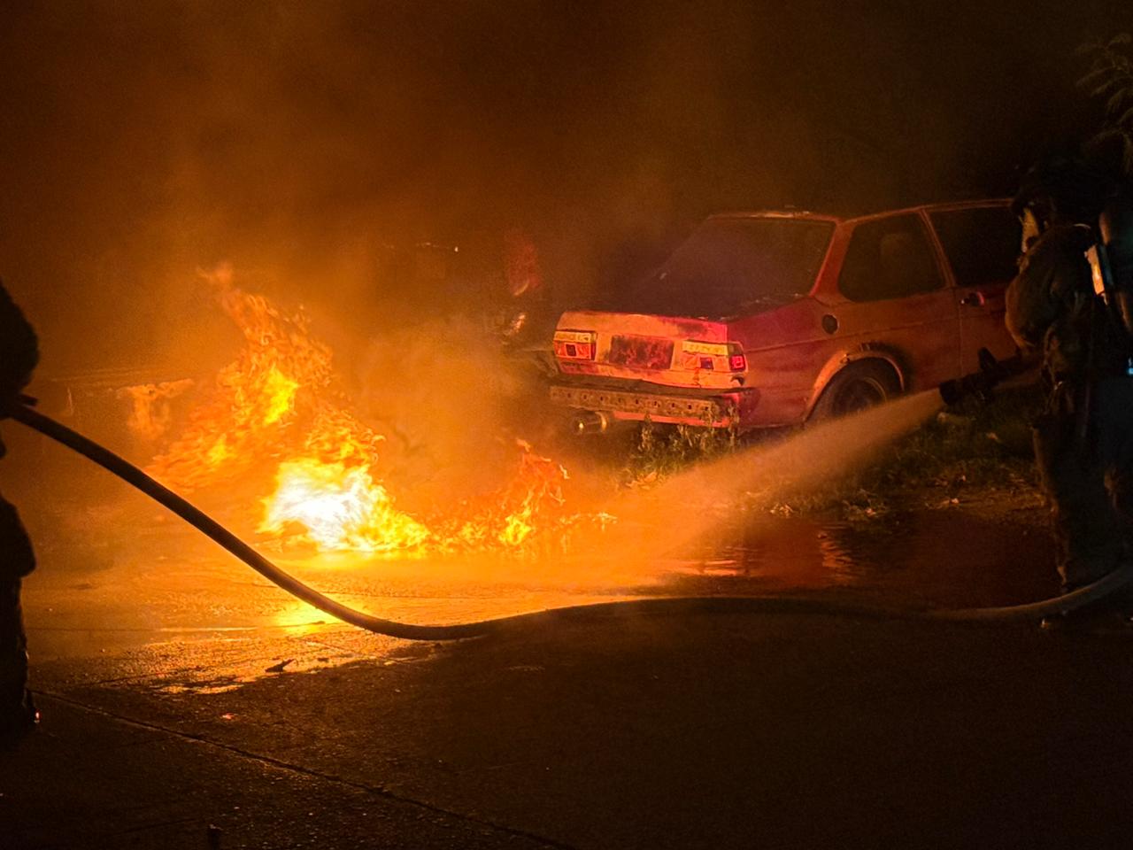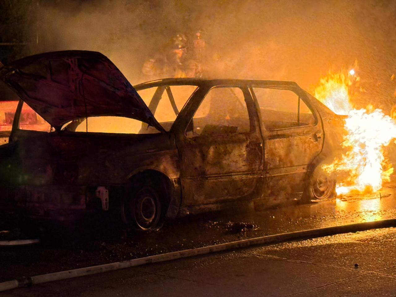 El automóvil Jetta modelo antiguo, año 88 o 90, se quemó en su totalidad, por lo que fue pérdida total.