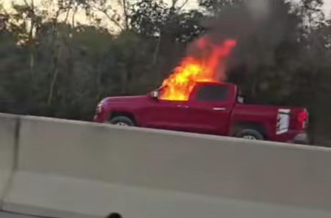 Cancún(Marcrix Noticias).- La mañana de este sábado 14 de febrero, una camioneta tipo pick-up color rojo se incendió en el kilómetro 139 de la carretera Cancún – Valladolid, en dirección a Valladolid, generando alarma entre automovilistas que pasaban por la zona.