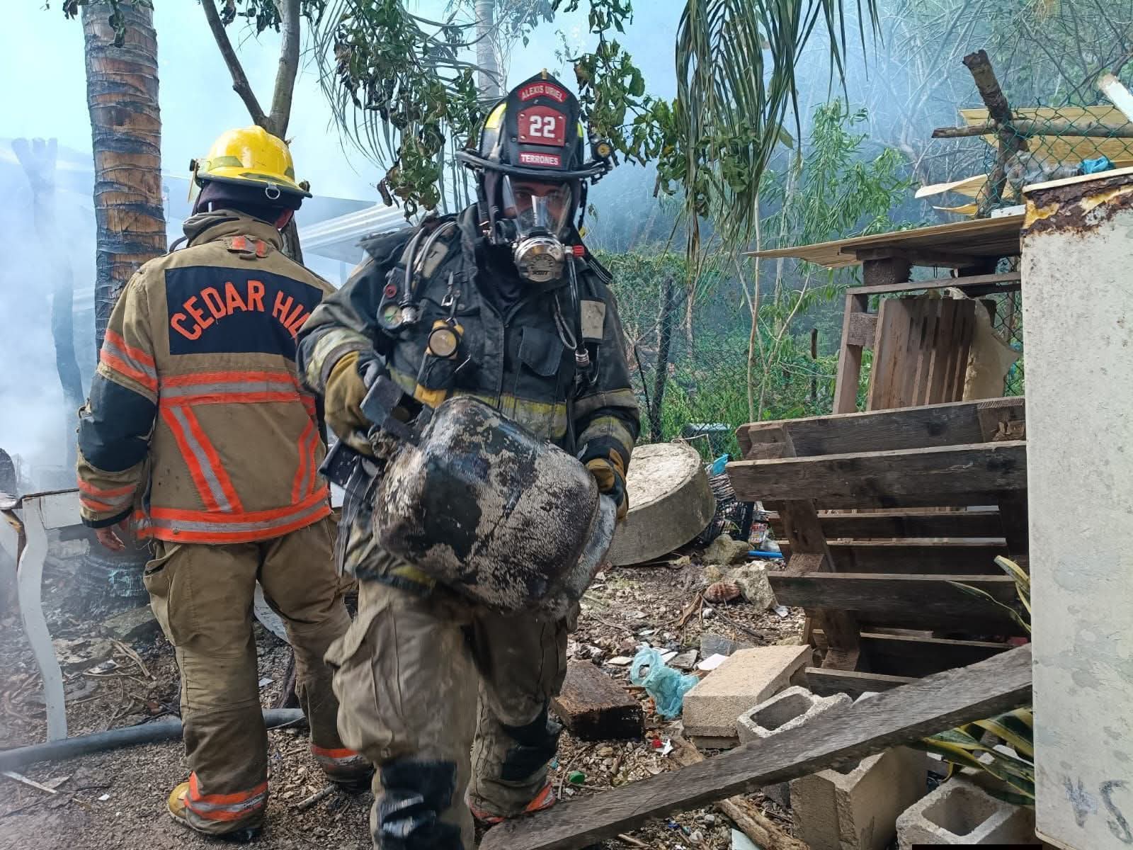Cozumel(Marcrix Noticias).- Un incendio registrado en una cocina improvisada construida con láminas de zinc y madera movilizó a cuerpos de emergencia la tarde de este sábado en la carretera Transversal, a la altura del kilómetro 3.5.