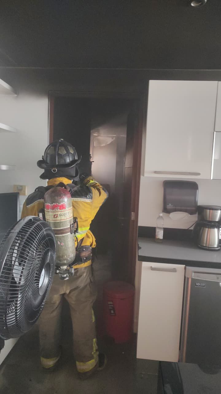 Al llegar al lugar el personal de bomberos accedió al edificio y encontró a la brigada del edificio trabajando con un hidrante.