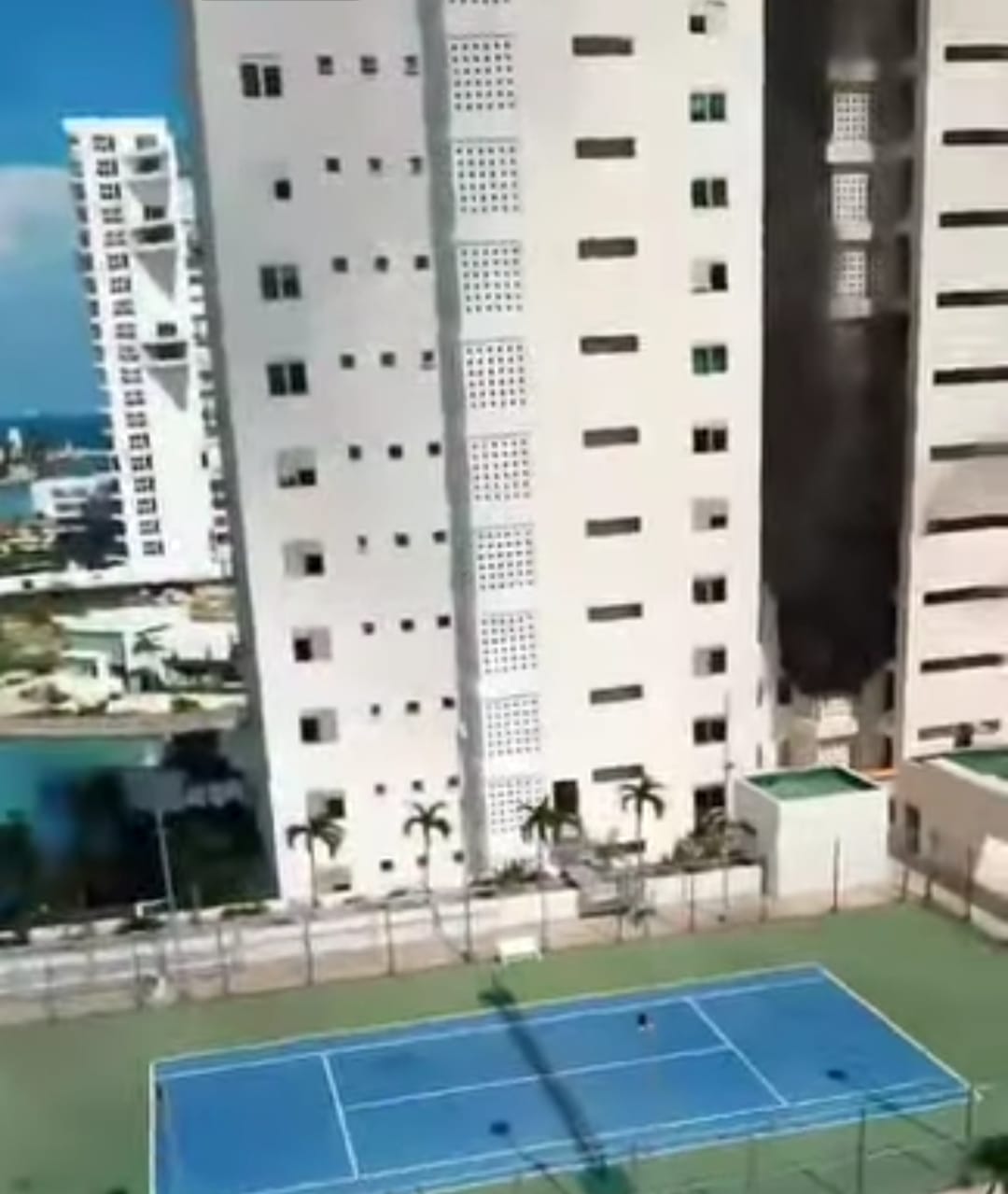 Cancún (Marcrix Noticias).- Un incendio de un departamento en el tercer piso del edificio Maioris Towers, ocurrió esta tarde en Puerto Cancún. Bomberos siguen trabajando en el edificio, el cual fue evacuado para evitar personas intoxicadas por el humo. Solo hay una persona intoxicada que fue llevada al Hospital.
