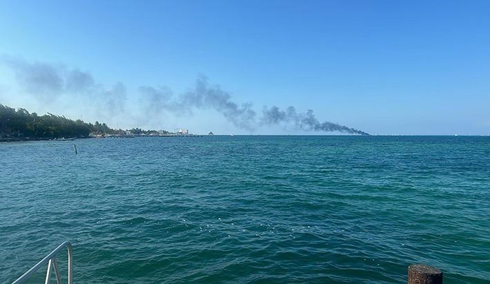 En los videos se observa a la embarcación en llamas y una larga estela de humo negro.