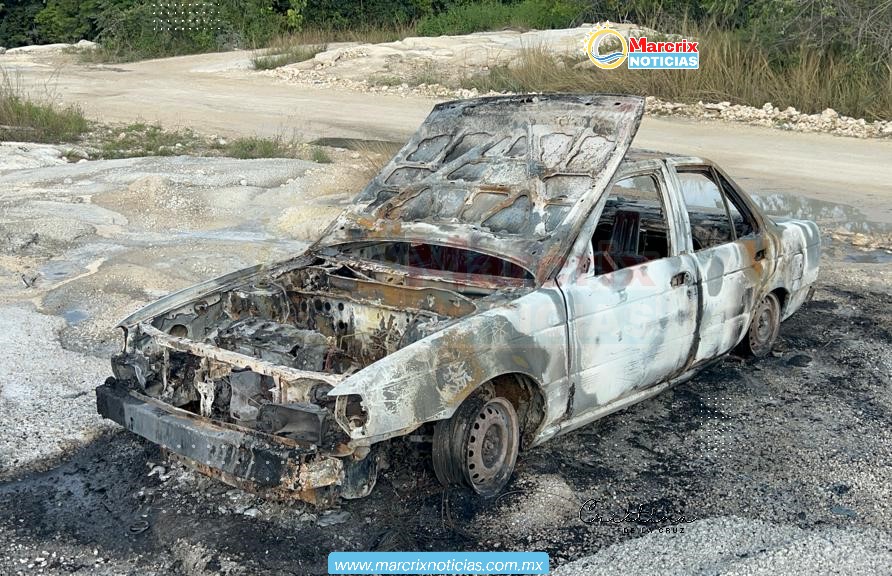 Cancún (Marcrix Noticias).- Un vehículo Nissan Tsuru se quemó por completo a espaldas del fraccionamiento Prado Norte ubicado en la supermanzana 260.
