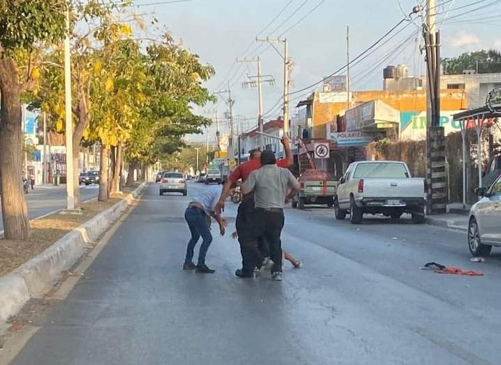 Campeche(Marcrix Noticias).- Los habitantes de Campeche no esperaron hasta la noche para ver acción en la pelea del “Canelo” Álvarez contra Bivol y decidieron agarrarse a golpes sobre la avenida Patricio Trueba y de Regil.