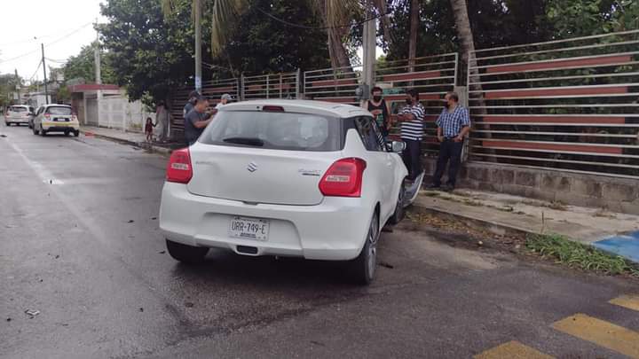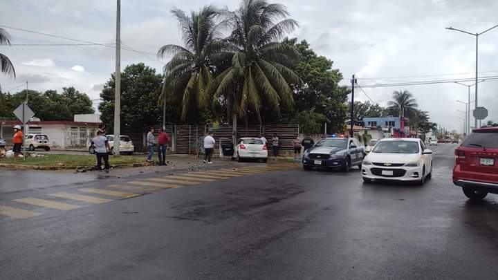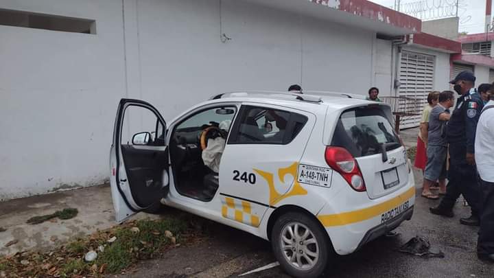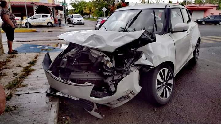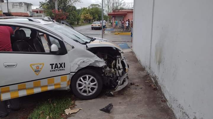 Chetumal(Marcrix Noticias).- Un aparatoso accidente cimbró a la capital del estado durante la mañana de hoy, luego de que un taxi chocara contra un automóvil particular sobre la avenida Francisco I Madero con Isla Cancún.