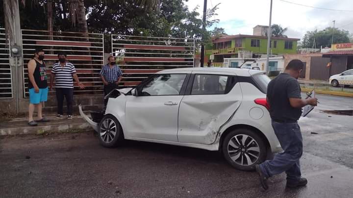 La conductora del automóvil tipo Swift se voló un alto y se estrelló de fuerte manera contra un taxi.