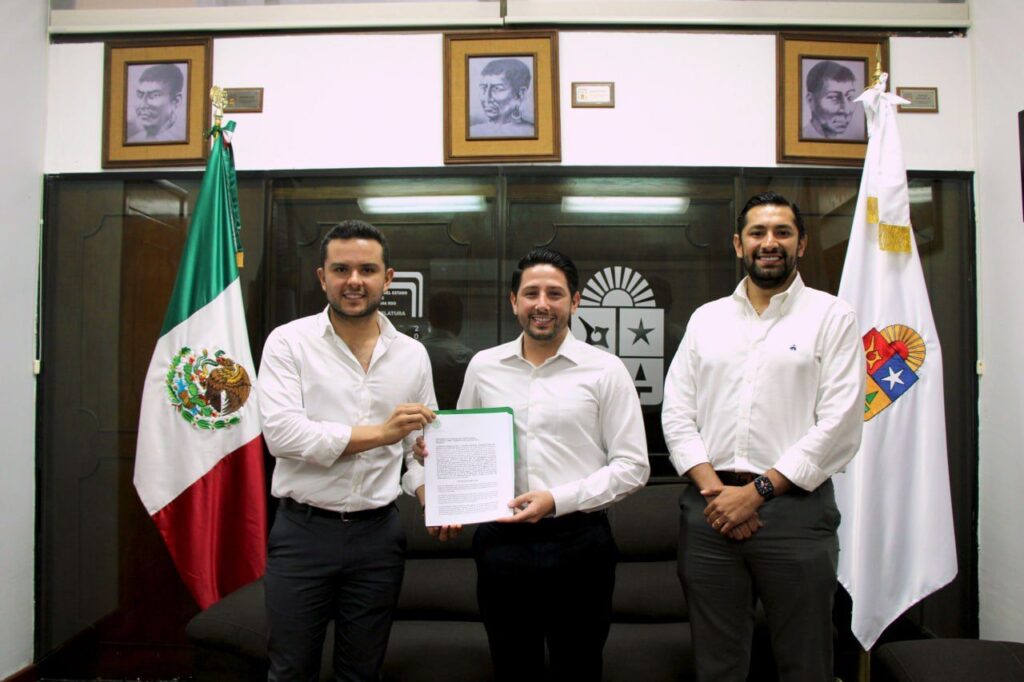 En ese marco, Pablo Bustamante acompañó al consejero jurídico del Poder Ejecutivo, Carlos Fuentes del Río, para hacer entrega oficial del documento en la ventanilla de Oficialía de Partes; asimismo, se reunieron con el diputado presidente de la Junta de Gobierno y Coordinación Política de la XVII Legislatura, Renán Sánchez Tajonar.