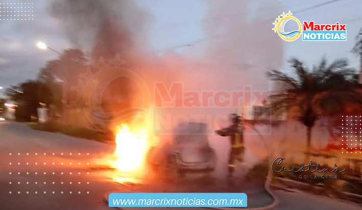 Cancún (Marcrix Noticias).- Una presunta falla mecánica en la parte del motor, ocasionó que un auto se incendiara hasta ser consumido en su totalidad.