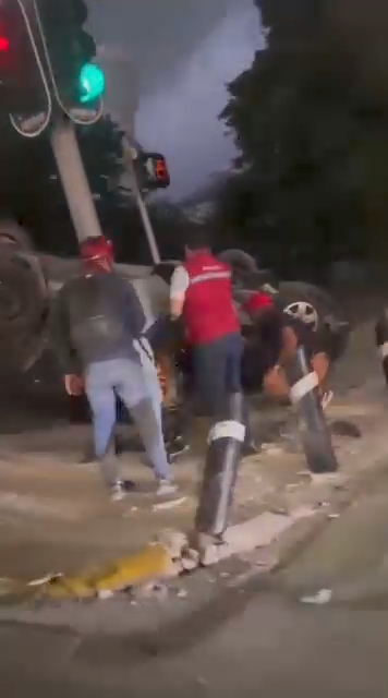 Se registró aparatosa volcadura sobre avenida Tulum de Cancún