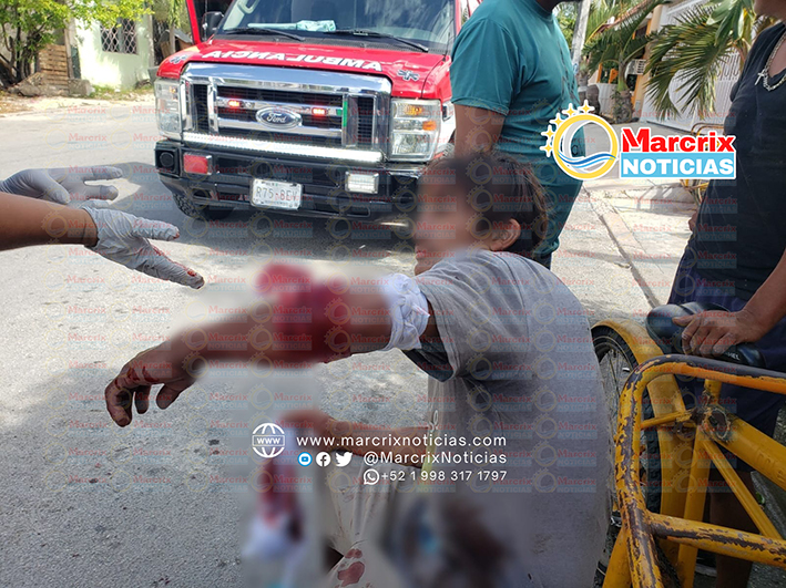 El lesionado identificado como Marco de 40 años originario de Chiapas, fue trasladado por paramédicos de Cancún Medical response hasta el hospital, pues necesitaba unas suturas.