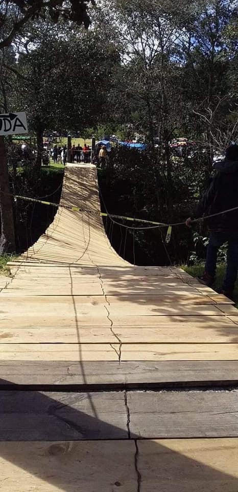 Chiapas (Marcrix Noticias).- En el parque recreativo Cuevas del Mamut en San Cristóbal de Las Casas, #Chiapas, este domingo un puente colgante se desplomó cuando más de una decena de turistas se encontraban cruzando, el cual no resistió el peso de dicho puente.