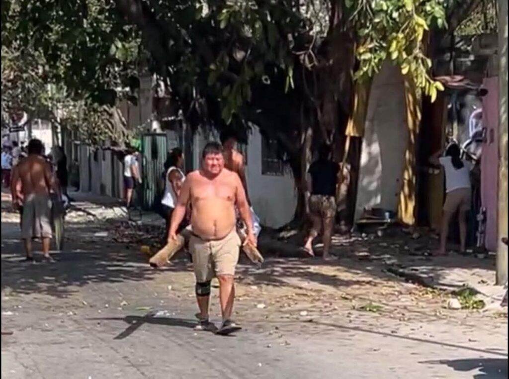 Playa del Carmen. ( Marcrix Noticias).- El desalojo se sale de control cuando habitantes se reunieron sobre la avenida 104 entre calles 10 y 15 para impedir la diligencia, lo que derivó en agresiones con piedras, palos y objetos metálicos contra elementos de la Secretaría de Seguridad Ciudadana.