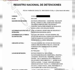 Sin embargo, pese a aparecer como detenida en registros oficiales, no existía una orden de aprehensión en su contra, y la Fiscalía de Michoacán nunca aclaró bajo qué calidad jurídica fue requerida, ni si su aseguramiento estaba vinculado formalmente a una carpeta de investigación.