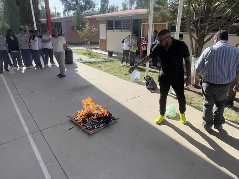 “También llevamos a cabo la quema y destrucción de artículos decomisados que se encuentran prohibidos en el reglamento escolar, mismos que todos los padres de familia aceptaron y dieron su consentimiento. Iniciamos una semana más de trabajo, les deseo éxito a todos en sus actividades diarias”, se detalla en la publicación firmada por la directora de la institución Hilda Patricia Ortega Nájera