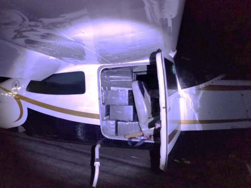 En la pista de la terminal se estableció un perímetro de seguridad para realizar una revisión a la aeronave, encontrando la presencia de dos tripulantes y 11 paquetes elaborados con cinta plástica, con un contenido aproximado de 469 kilogramos de una sustancia con las características de la cocaína.