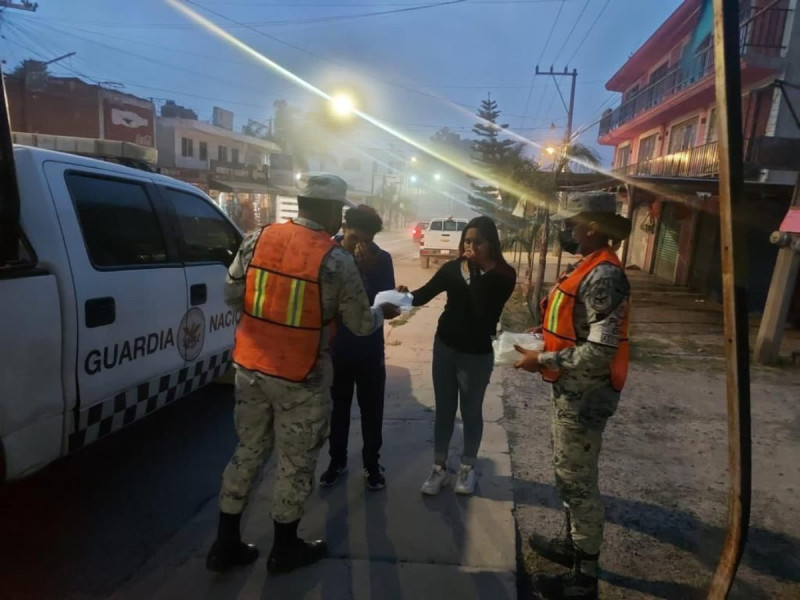 Durante los recorridos que se realizan a las 51 comunidades en donde se ha desplegado, el personal del Ejército y de la Guardia Nacional está recogiendo la ceniza expulsada por Don Goyo, para evitar problemas de salud entre los habitantes.