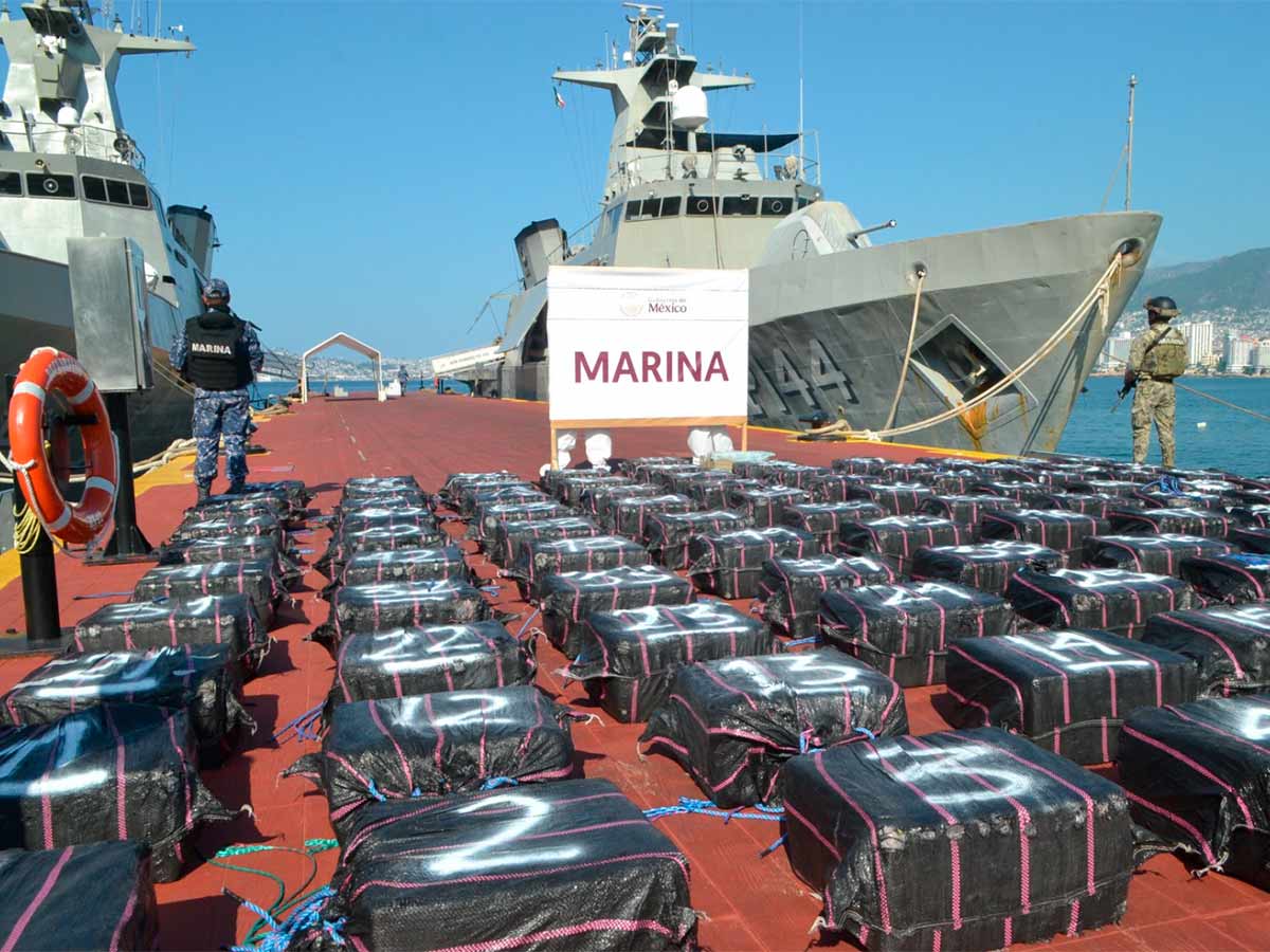 Elementos de la Armada de México (Semar), lograron el aseguramiento de 3 mil 600 (tres mil seiscientos) kilogramos de cocaína, así como la detención de nueve presuntos transgresores de la ley, a aproximadamente 133 millas náuticas (214.043 kilómetros) al sureste de Acapulco, Guerrero.