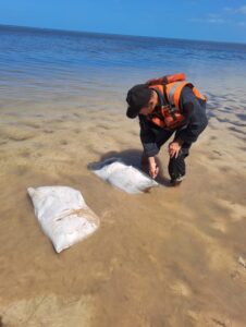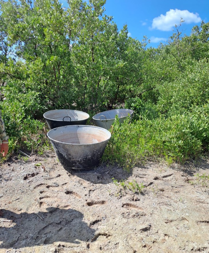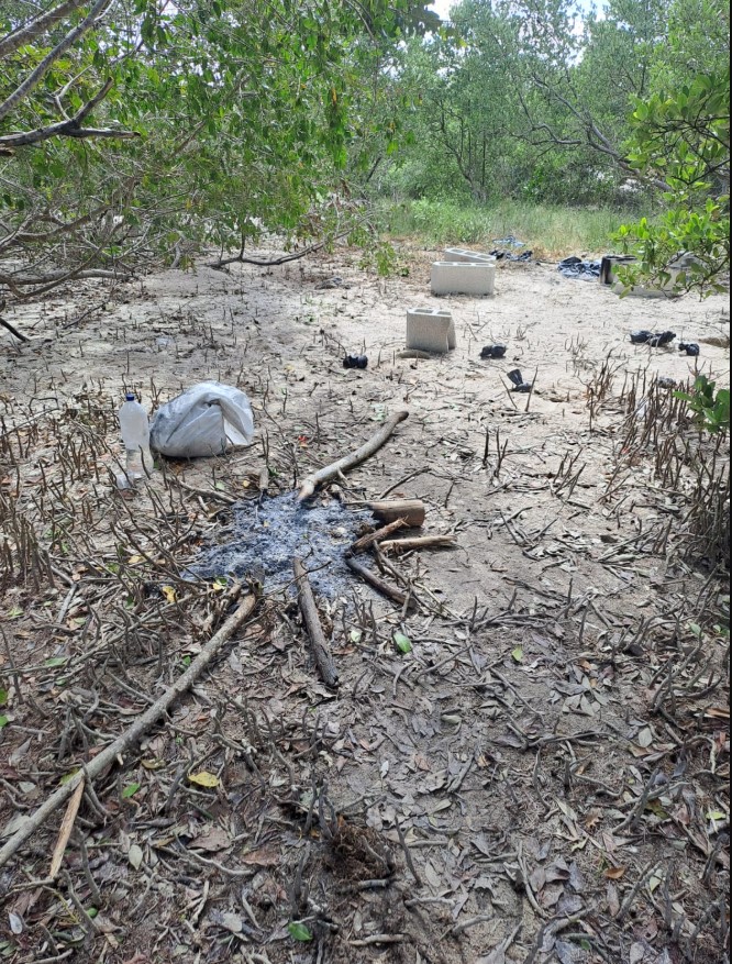 Durante el recorrido, el personal naval detectó una cocina clandestina abandonada, conocida como “sancochadero”, y aseguró tres cazos y más de 120 kg de sal de grano.