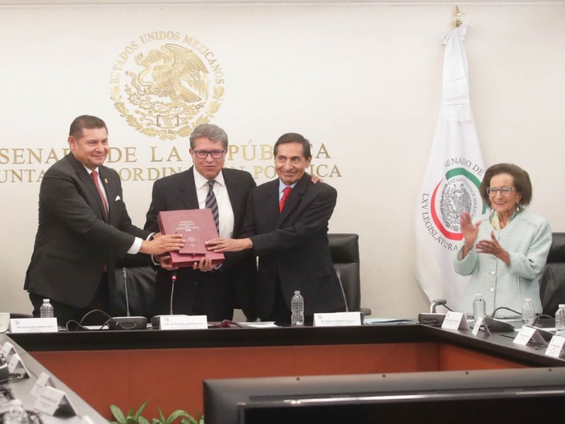 El secretario de Hacienda y Crédito Público, Rogelio Ramírez de la O, entregó el documento a los presidentes de la Mesa Directiva, Alejandro Armenta Mier, y de la Junta de Coordinación Política, Ricardo Monreal, lo cual no sucedía desde hace varios años, pues suele hacerlo algún subsecretario del ramo.