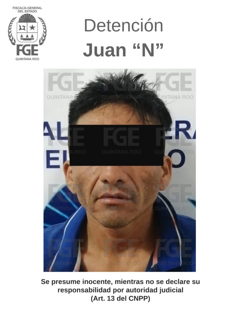 En el municipio de Othón P. Blanco, se cumplimentó una orden de aprehensión en contra de Juan “N” por su probable participación en hechos que podrían ser constitutivos del delito de feminicidio en grado de tentativa y violencia familiar. La detención se llevó a cabo sobre la calle Felipe Ángeles con avenida CNC en la colonia Adolfo López Mateos de la capital del estado.