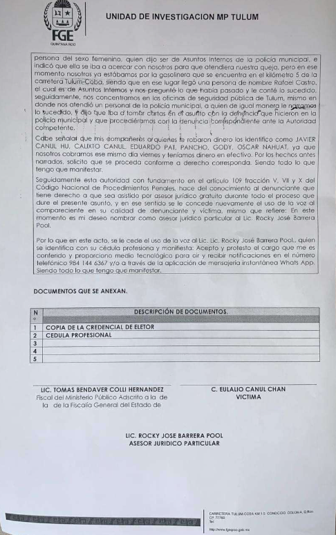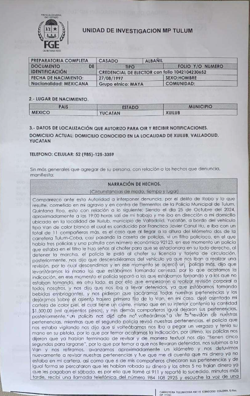 La medida se tomó tras una denuncia formal presentada por las víctimas, quienes relataron el incidente ocurrido la noche del 25 de octubre. La denuncia quedó registrada bajo el número FGE/QROO/TUL/10/1677/2024.