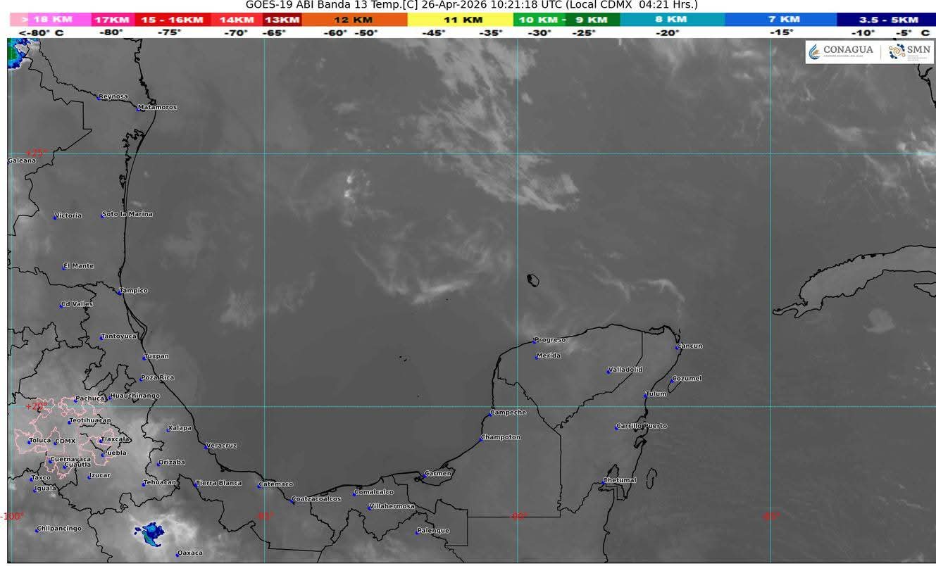 Cancún(Marcrix Noticias).- Una circulación anticiclónica en niveles medios de la atmósfera localizada sobre la mayor parte del país, mantendrá una onda de calor sobre algunas zonas del estado, cielo parcialmente nublado a despejado durante el transcurso del día, poca probabilidad de lluvias, ambiente caluroso a muy caluroso. Viento con rachas de 40 km/h.