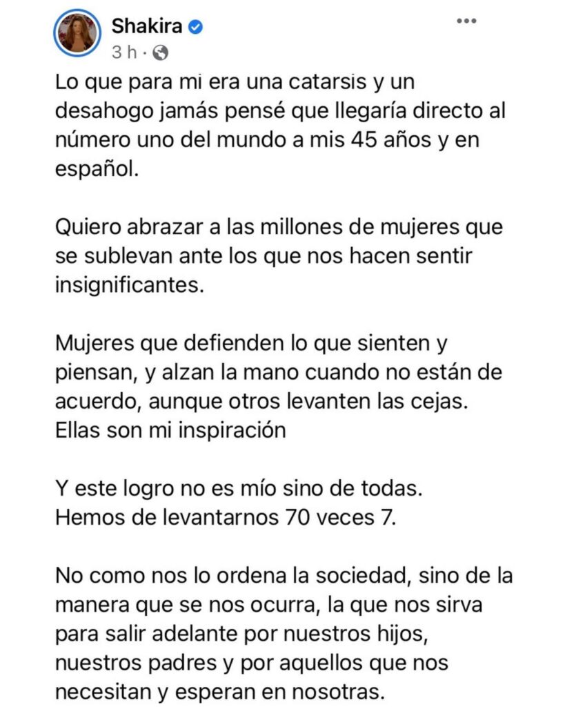 Luego de las críticas que recibió por su canción contra Piqué y Clara Chía, Shakira respondió en redes a sus detractores.