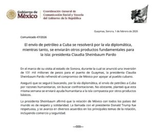 Con este mensaje, Sheinbaum envía una señal clara, México no cederá a presiones externas y seguirá apoyando a Cuba con petróleo y ayuda directa, sin medias tintas ni compromisos ocultos.