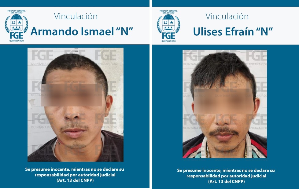 • La FGE Quintana Roo también obtuvo la medida cautelar de la prisión preventiva oficiosa en contra de Ulises Efraín “N” y Armando Ismael “N”, por hechos ocurridos el 24 de septiembre en Benito Juárez