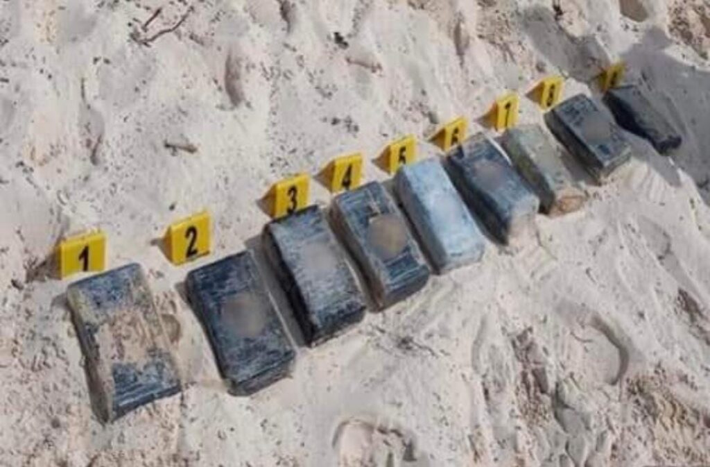 Al arribar al lugar realizaron una búsqueda exhaustiva en la zona y encontraron a la orilla del mar, entre sargazo, alrededor de nueve paquetes rectangulares color negro, con estampado dorado, conteniendo aparente narcóticos.