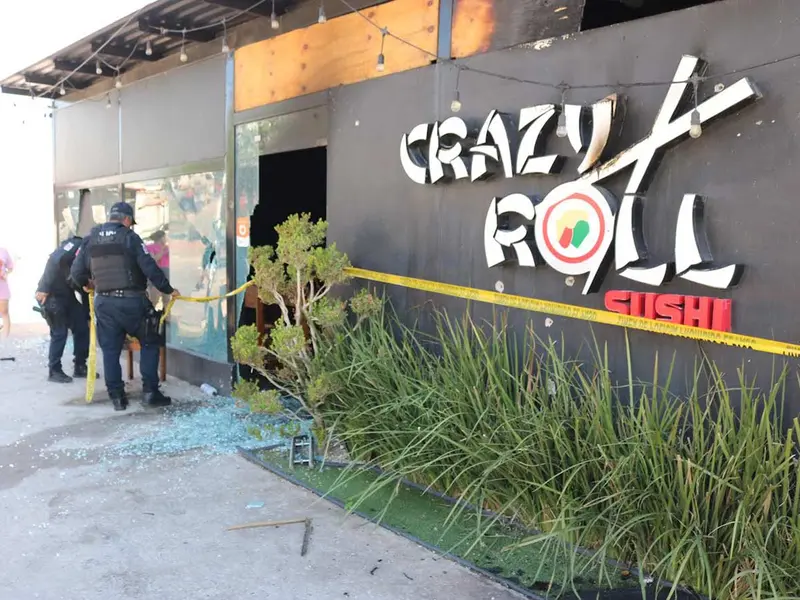 Se trata de un restaurante de sushi, ubicado por la avenida Presidente Luis Echeverria, en la colonia Los Huizaches, el cual quedó completamente destruido, logrando observar los impactos de bala en la fachada y en los cristales.