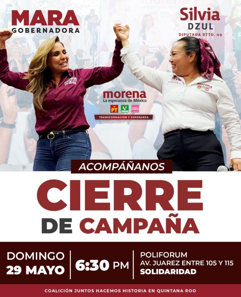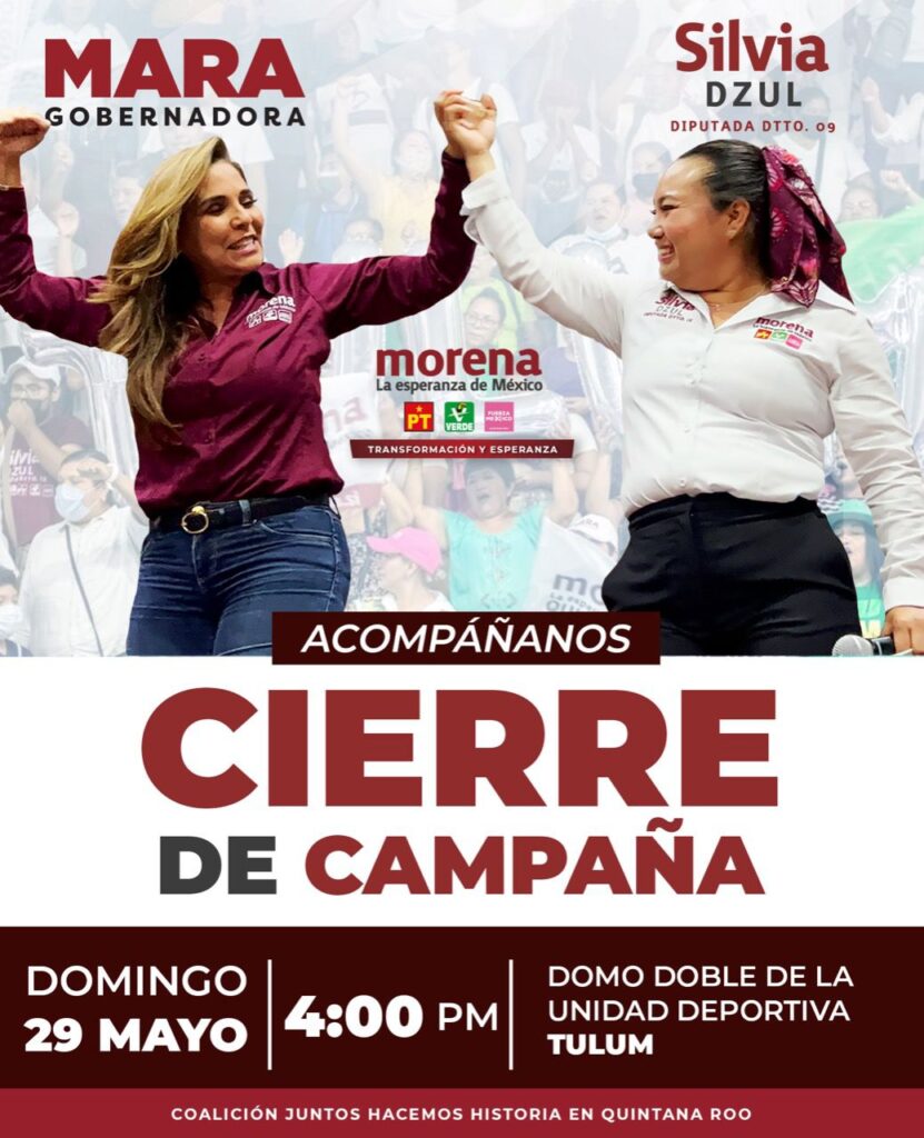 Como parte del cierre de campaña, guerreros y guerreras morenistas se darán cita en Tulum y Solidaridad, respaldando a Silvia Dzul y Mara Lezama, en presencia de uno de los defensores de los comités de Morena a nivel nacional, Adán Augusto López Hernández.