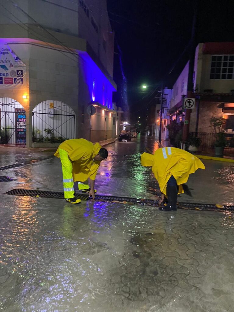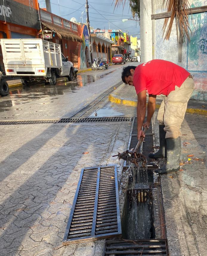 Aunado al trabajo conjunto y oportuna intervención del personal de las direcciones de Protección Civil y Servicios Públicos, quienes desde temprana hora atendieron reportes de encharcamientos y llevaron a cabo la limpieza de alcantarillas y desasolve de pozos de absorción en pro de los isleños.