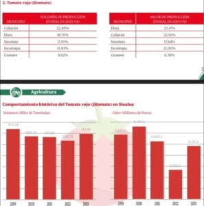Sinaloa representa el corazón de la industria tomatera en México. En 2023, produjo más de 712 mil toneladas de tomate, con un valor estimado de 6 mil 121 millones de pesos. Además, el 15% de la población ocupada en la entidad trabaja en el campo, lo que representa a más de 170 mil personas.