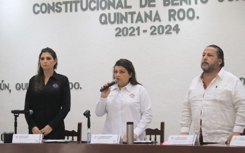 Cancún, Q.R., a 21 de julio de 2022.- La encargada de despacho de la Presidencia Municipal de Benito Juárez, Lourdes Latife Cardona Muza, anunció que además de la implementación del operativo vial correspondiente para garantizar orden y seguridad en los traslados, el gobierno municipal participará en mesas de trabajo con diferentes sectores económicos y sociales para compartir anticipadamente las previsiones que deben tener por la rehabilitación del Boulevard Luis Donaldo Colosio.