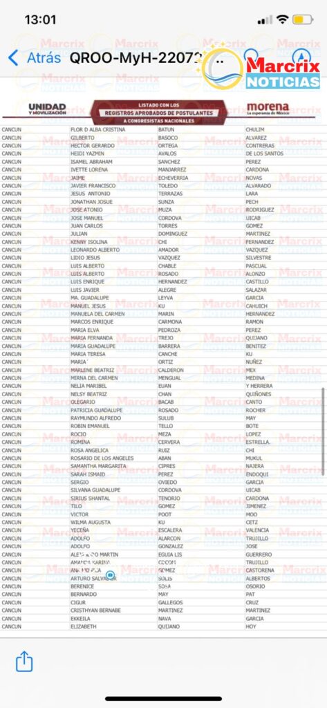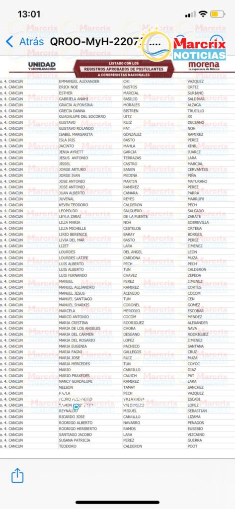 Cancún (Marcrix Noticias).- Más de 400 morenistas solicitaron su registro como consejeros estatales, según la lista publicada anoche por la dirigencia nacional del partido.