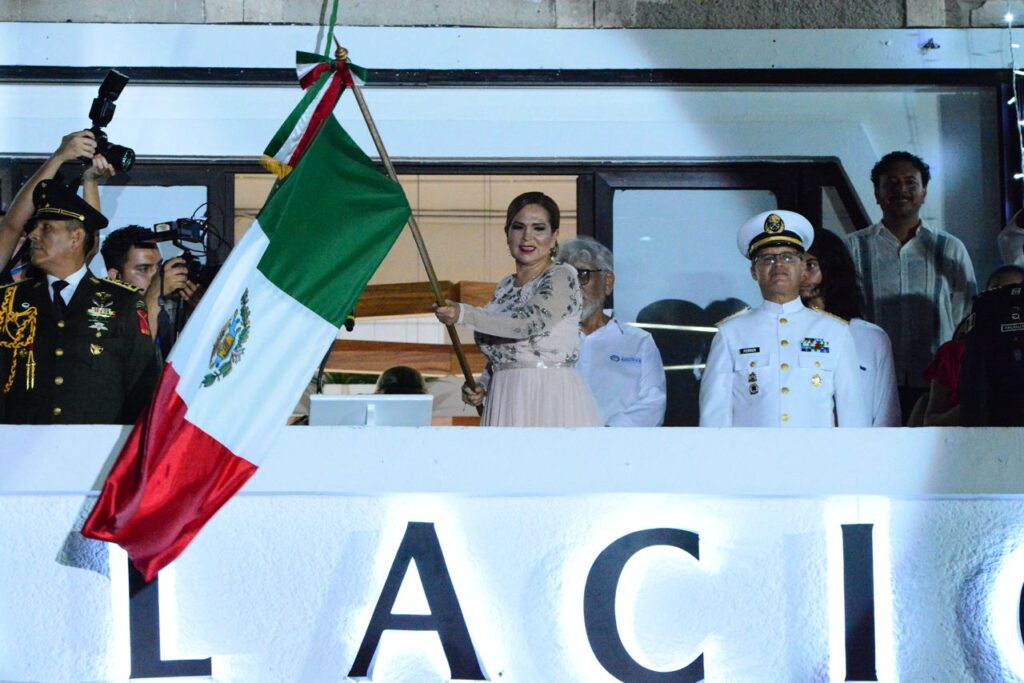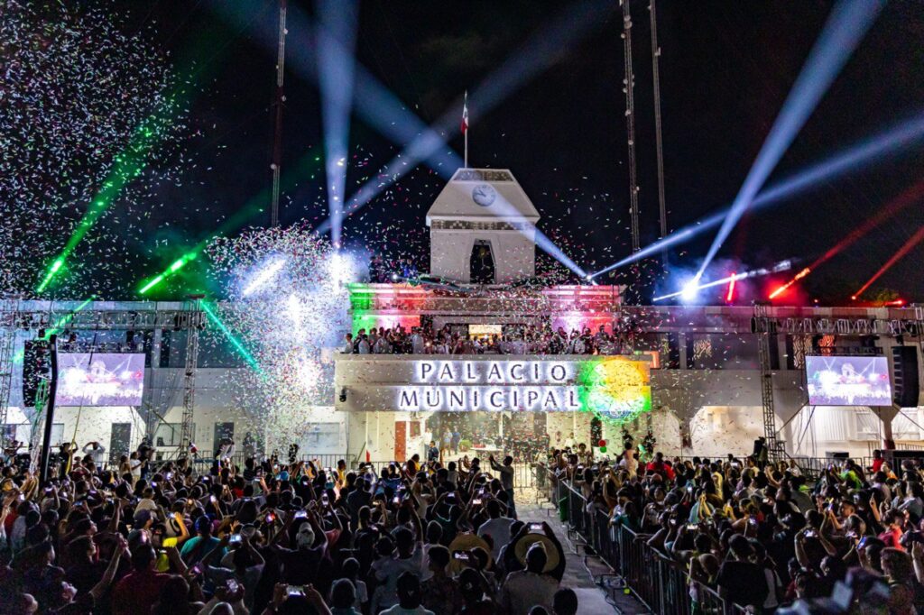 Playa del Carmen, Solidaridad, (MARCRIX Noticias), 15 de septiembre del 2023.- Ante una multitud de 20 mil habitantes mexicanos y amigos de otras nacionalidades, la presidenta Lili Campos dio el tradicional Grito de Independencia desde el palco del Palacio Municipal de la Plaza 28 de Julio, donde ondeó con orgullo la bandera de México mientras hacía resonar el repique de la campana.