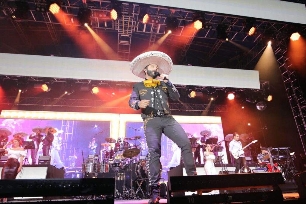 Después del tradicional grito el público presente tuvo la oportunidad de disfrutar de un espectacular show de drones. Acto seguido, la música y las canciones de “La Dinastía Aguilar” inundaron la plaza cívica 28 de julio, con temas como “Por mujeres como tú,” “Directo al corazón,” “Por una mujer bonita,” “Perdóname,” “Que agonía,” “Dime cómo quieres,” “La Llorona,” “Fruta prohibida,” entre muchos otros que fueron coreados por miles de asistentes.