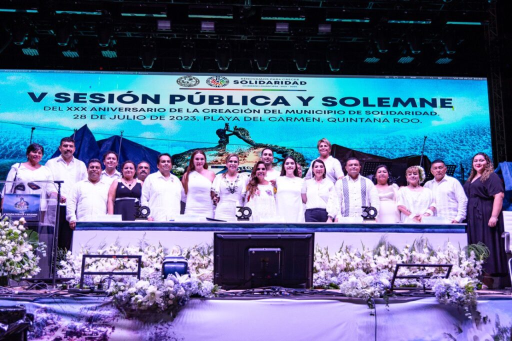 Playa del Carmen, Solidaridad, (MARCRIX Noticias), a 28 de Julio del 2023.- Ante miles de personas se realizó la conmemoración del 30 aniversario de Solidaridad, con una sesión pública y solemne encabezada por la presidenta municipal, Lili Campos, en la plaza cívica 28 de julio.