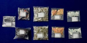 Durante la revisión, se aseguraron 120 bolsitas transparentes que contenían marihuana; 37 bolsitas triangulares de plástico traslúcido color amarillo, con fragmentos sólidos de cristal; y 33 bolsitas triangulares de plástico traslúcido color blanco, con cocaína.